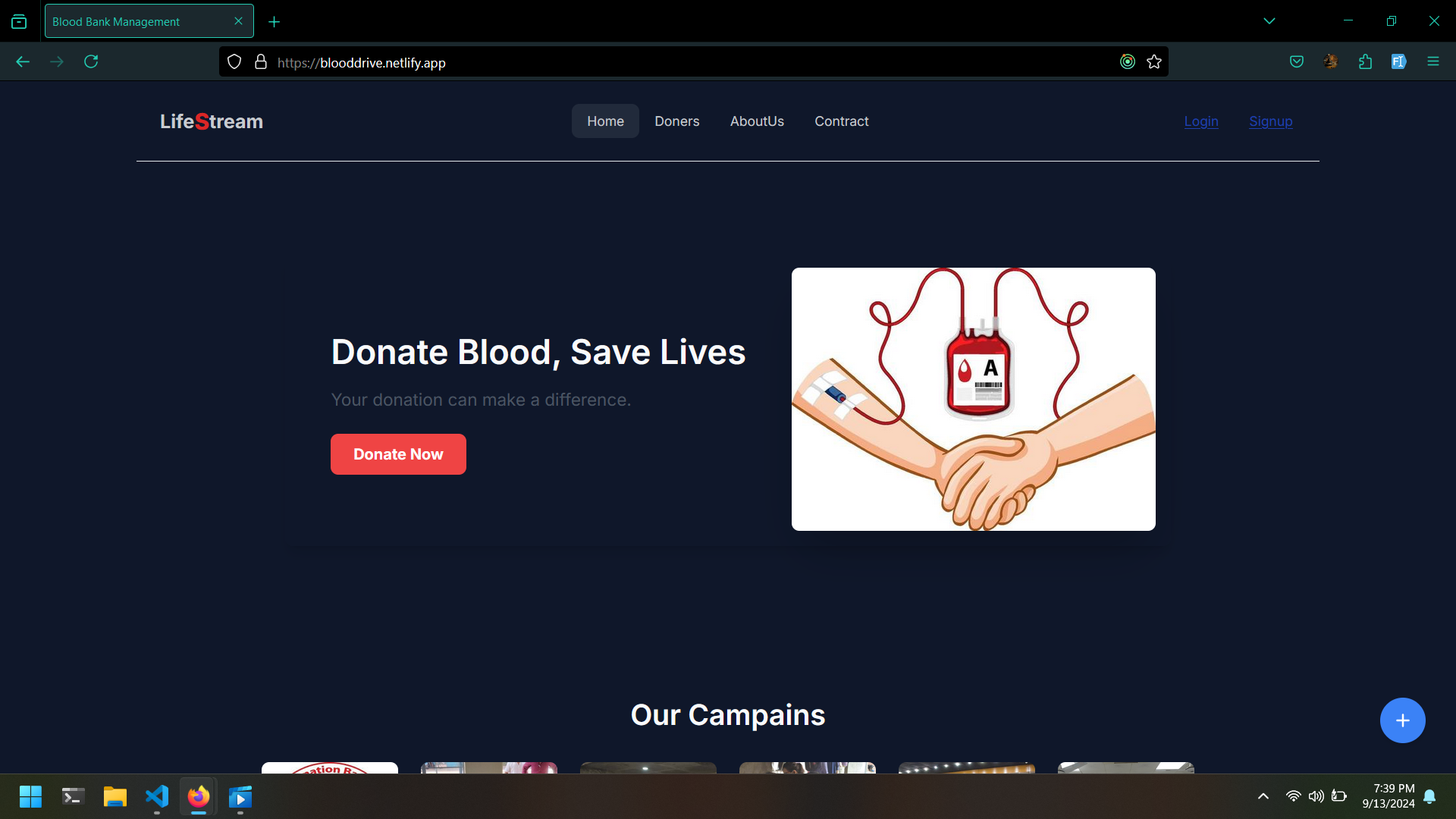 LifeStream is a Blood Bank Management app, where people can direct connected to a blood donner thrugh our app, A donner is need to varifyed by the admin or author before he/she become a donner. There is a search filter to search donner by catogory